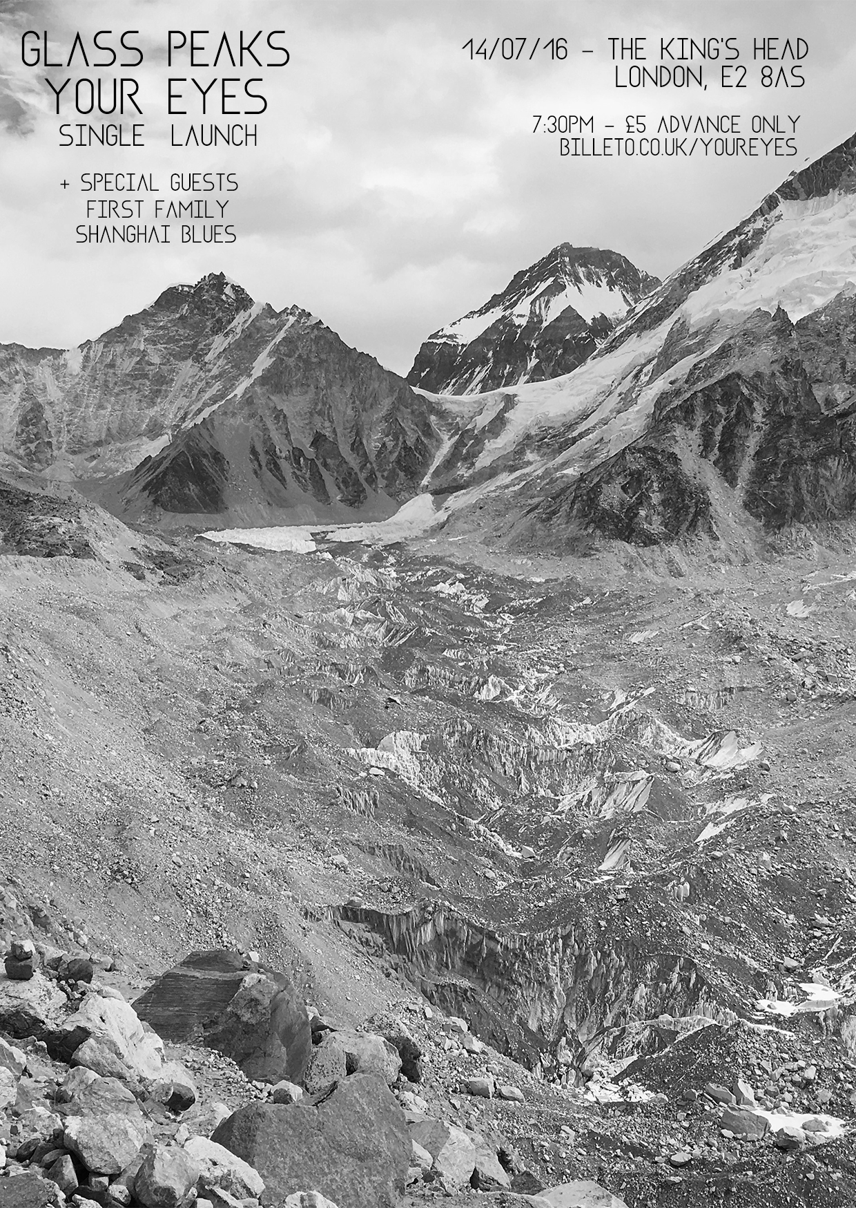 GLASS PEAKS' debut single 'Your Eyes' is released independently on 15th July and to celebrate we're throwing a London launch party on Thursday 14th July at The King's Head (E2 8AS - 5 mins walk from Hoxton station). Live music on the night from Glass Peaks + support from First Family & Shanghai Blues.