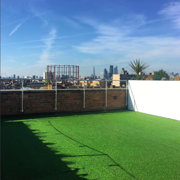 This yoga class takes place outdoors in a gorgeous semi-private yoga corner of Netil360, with stunning views of the city.