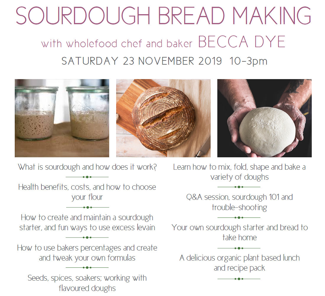 - A delicious organic plant based lunch, your own starter, recipes and bread to take home