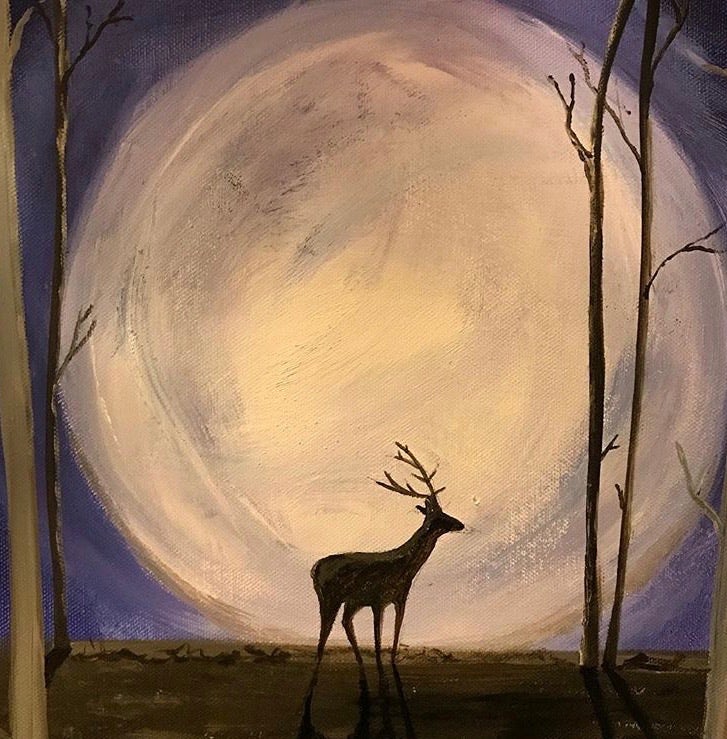 For this Paint Club we will be painting a beautiful full moon with a silhouetted stag.