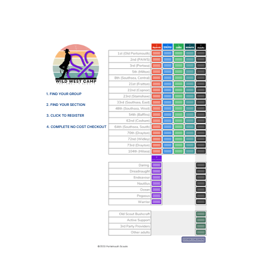 During sign up (depending on participants' age) parents/carers may be asked to give permission for youth members to take part in CROSSBOW and/or SMALL-BORE RIFLE shooting activities on 09/09/23. See wildwest.portsmouthscouts.org.uk/shooting for more information.